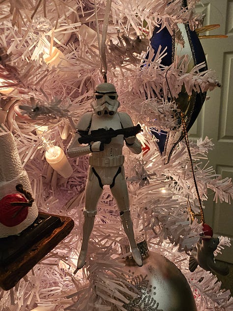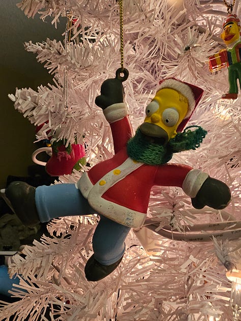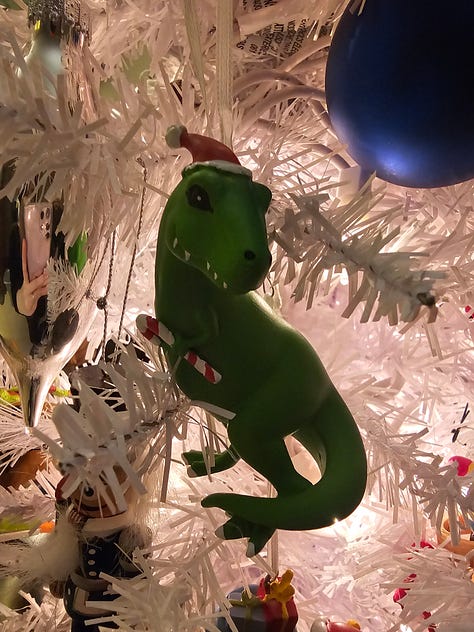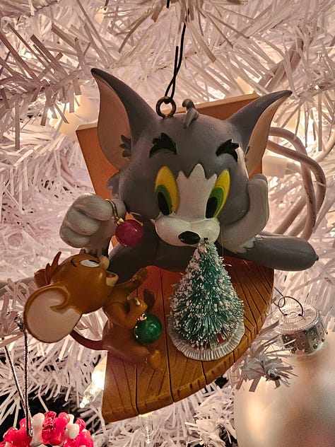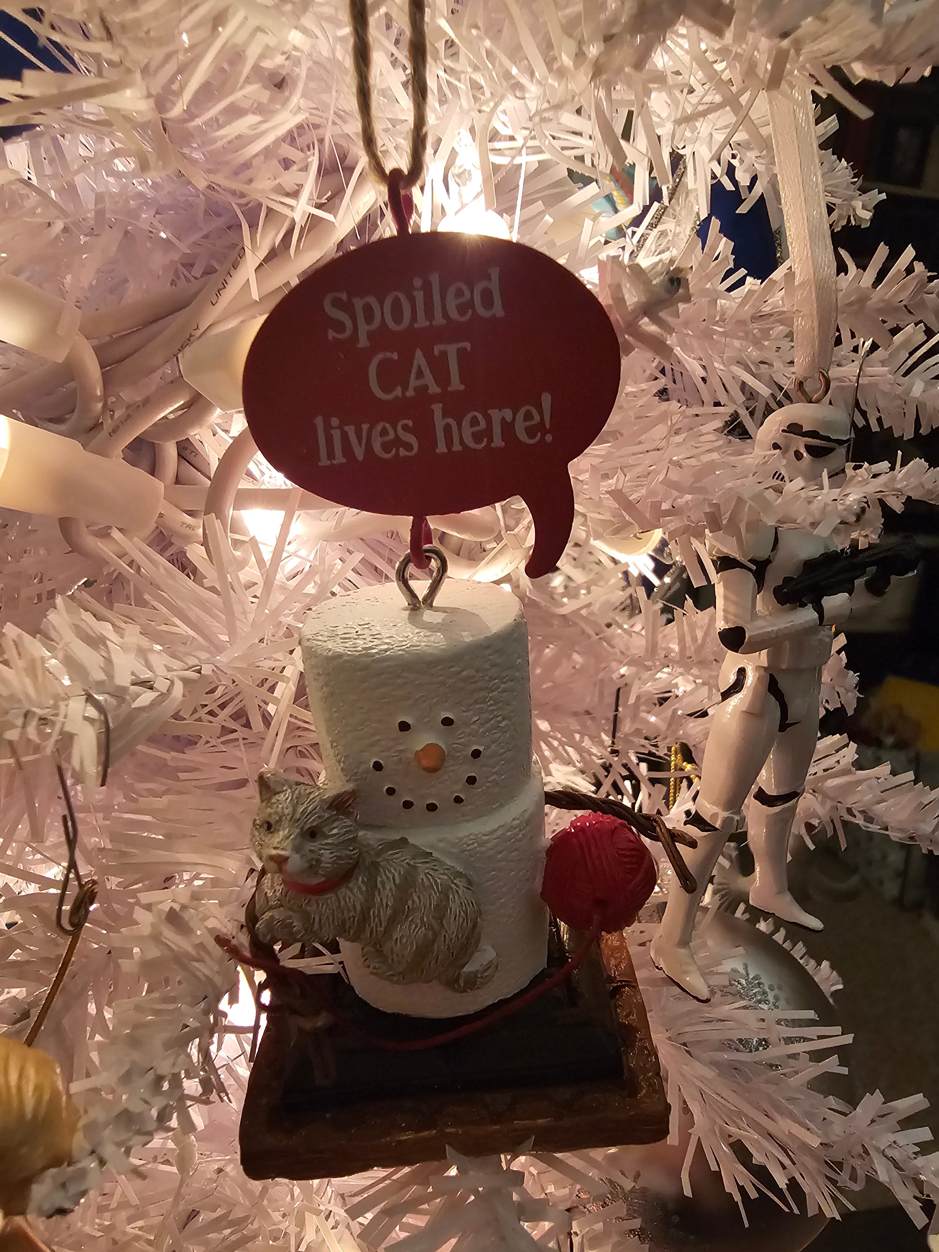 Well, I did not have a lot of money to replace it. So I got this skinny white tree for $30 on a clearance blow-out, and I have used it ever since. It works out because my home is small, so the size is perfect. However, I have enough ornaments for a much larger, fuller tree. So, I alternate between the years, to what goes on the tree this year to next. Perhaps one day, if I am lucky to get a house, I will get a big tree, and be able to proudly display all my ornaments again.