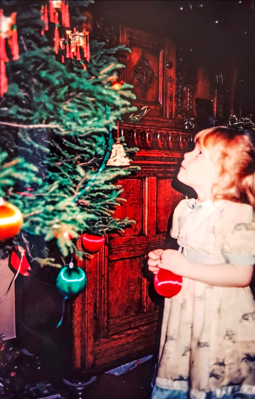 Here is a photo of me, decorating my grandmothers real tree, with silken baubles. She is gone now, as are all my grandparents. I will always carry fond memories of Christmas with them.